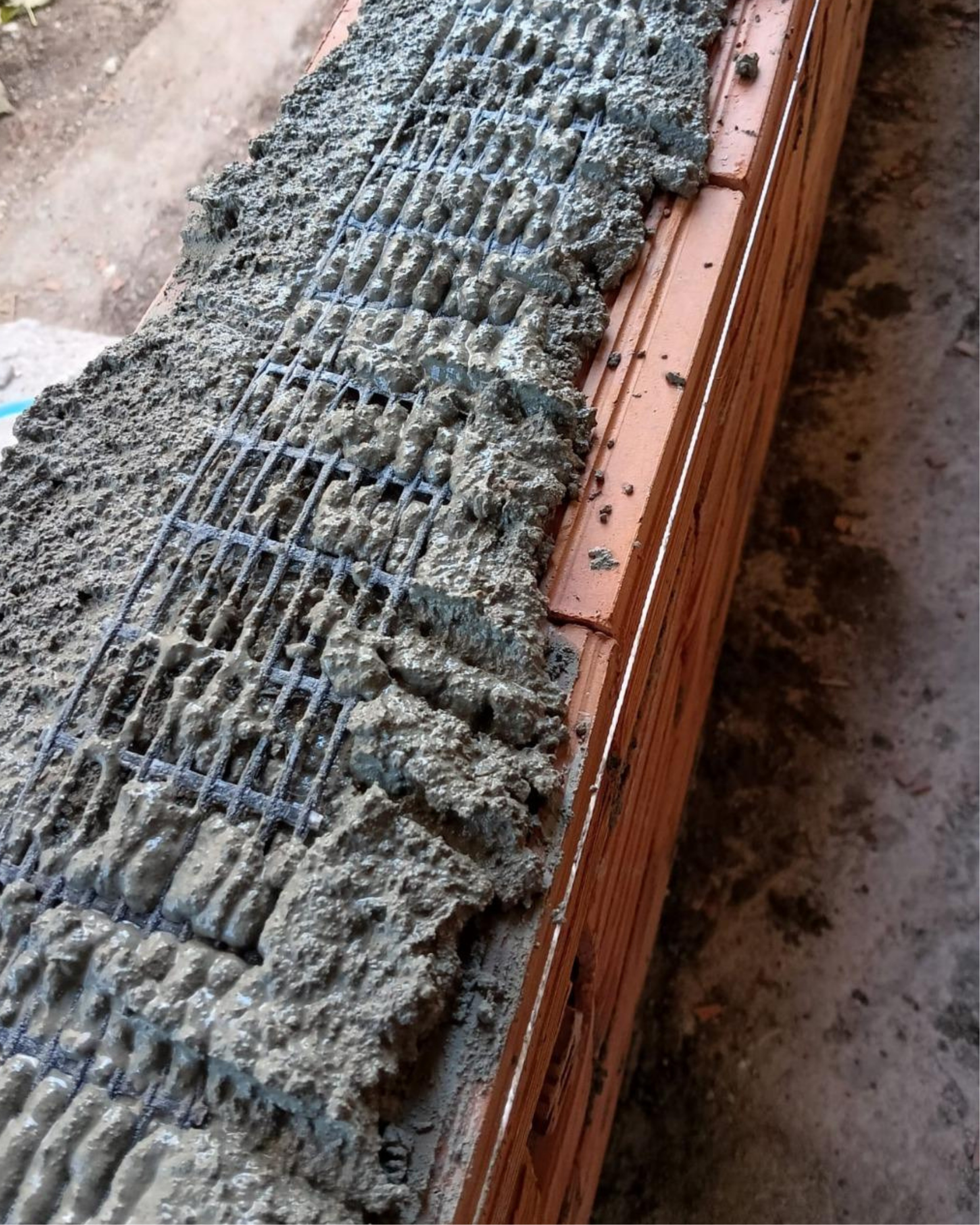 During the reconstruction works, solidian BRIKSY fiberglass bed joint reinforcement was integrated into the masonry walls along the horizontal mortar joints. BRIKSY was installed directly within the mortar during bricklaying, ensuring continuous reinforcement throughout the wall length and enabling the masonry to act as a more unified structural element.